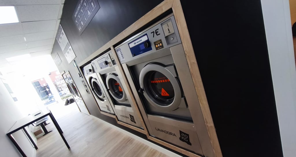Lavandería autoservicio con máquinas Electrolux, rápidas y económicas.