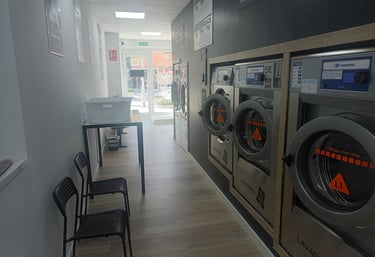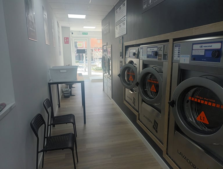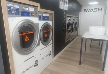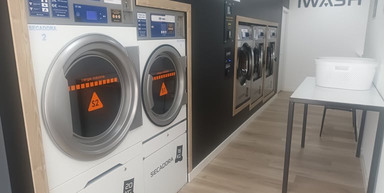 Seca tus prendas en máquinas de alta capacidad por solo 3 €, limpio y eficiente.